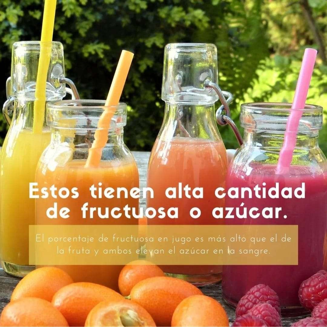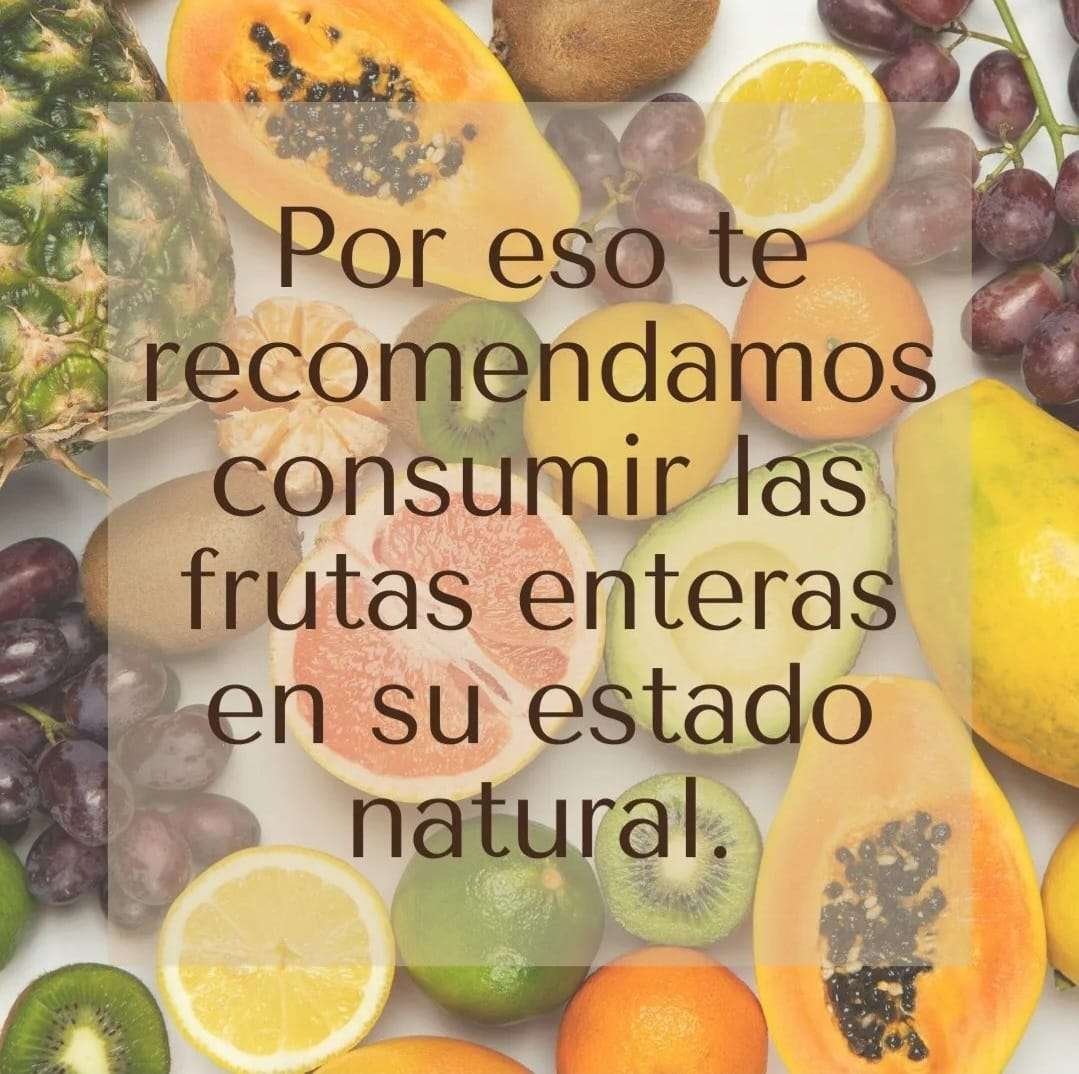 Cuando licuamos la fruta para consumirla como jugo ella pierde la fibra. En cambio cuando consumimos la fruta entera está contiene la fibra la cual nos protege al momento de consumirla logrando que sea más bajo su índice glucémico.