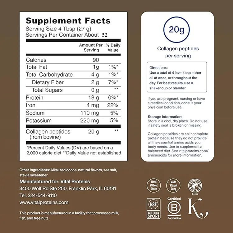 Colágeno Vital Proteins Chocolate 923gr 34 Serv