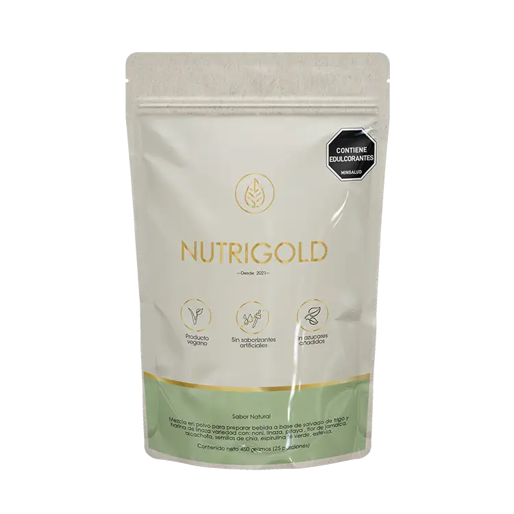 Fibra Nutrigold 100% natural, diseñada para que tu alimentación diaria contenga la cantidad de fibra adecuada.