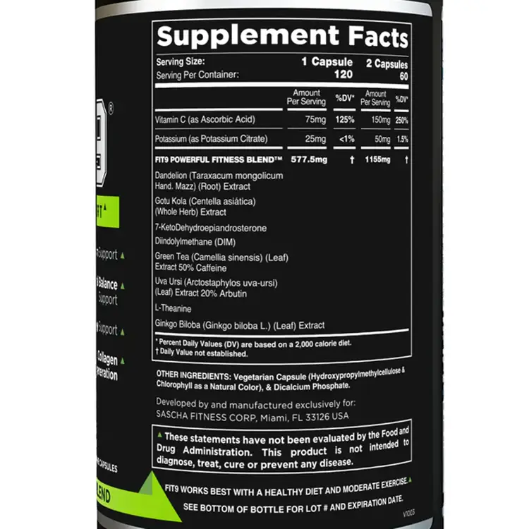 El FIT9 120 caps es un suplemento compuesto por nueve súper ingredientes que pueden Ayuda con la pérdida de grasa de una manera segura y natural. Brindando equilibrio hormonal, ayudará a acelerar el metabolismo, elimina la retención de líquidos, celulitis y grasa. Ayudará a tu cuerpo a usar más grasa como combustible.