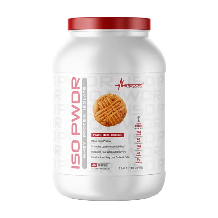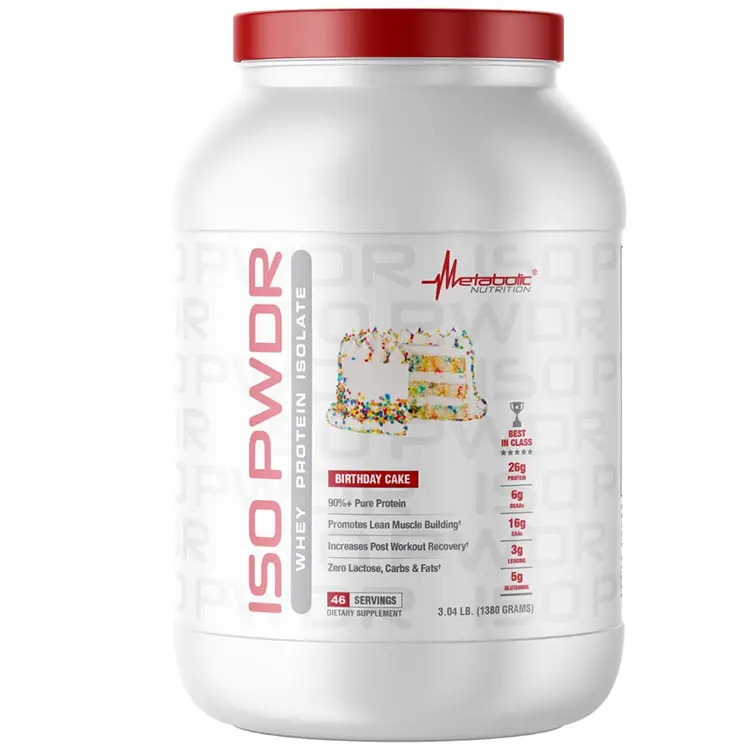 Iso Pwdr Sabores Varios 3.04 Lb 46 Serv de Metabolic es una proteína aislada de suero de leche de alta pureza, ideal para apoyar la recuperación y el desarrollo muscular después del entrenamiento. Su fórmula baja en carbohidratos y grasas se absorbe rápidamente, aportando los aminoácidos esenciales que tu cuerpo necesita para reparar y fortalecer el músculo.