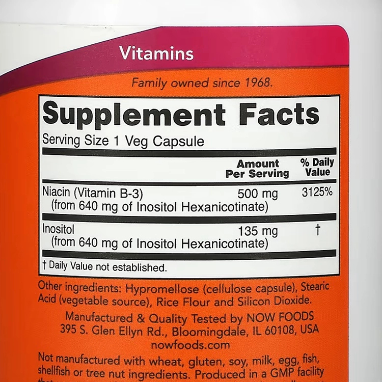 Niacina de NOW es un suplemento de vitamina B3 que apoya el metabolismo energético, la salud cardiovascular y el buen funcionamiento del sistema nervioso.