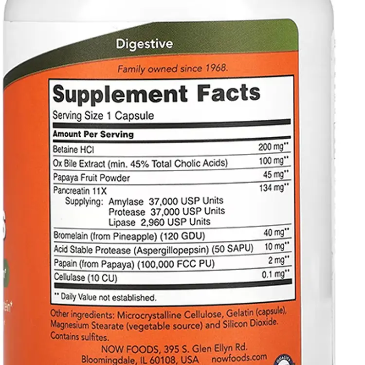Now super enzimas es una mezcla completa de enzimas que apoyan la digestión saludable. Formulada con bromelina, bilis de buey, pancreatina y papaína, Super Enzymes ayuda a optimizar la descomposición de grasas, carbohidratos y proteínas.